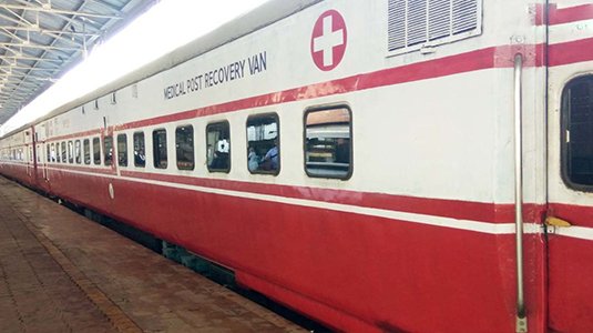 Each train ambulance includes ICU, oxygen, ventilator, and cardiac monitoring for continuous patient care.